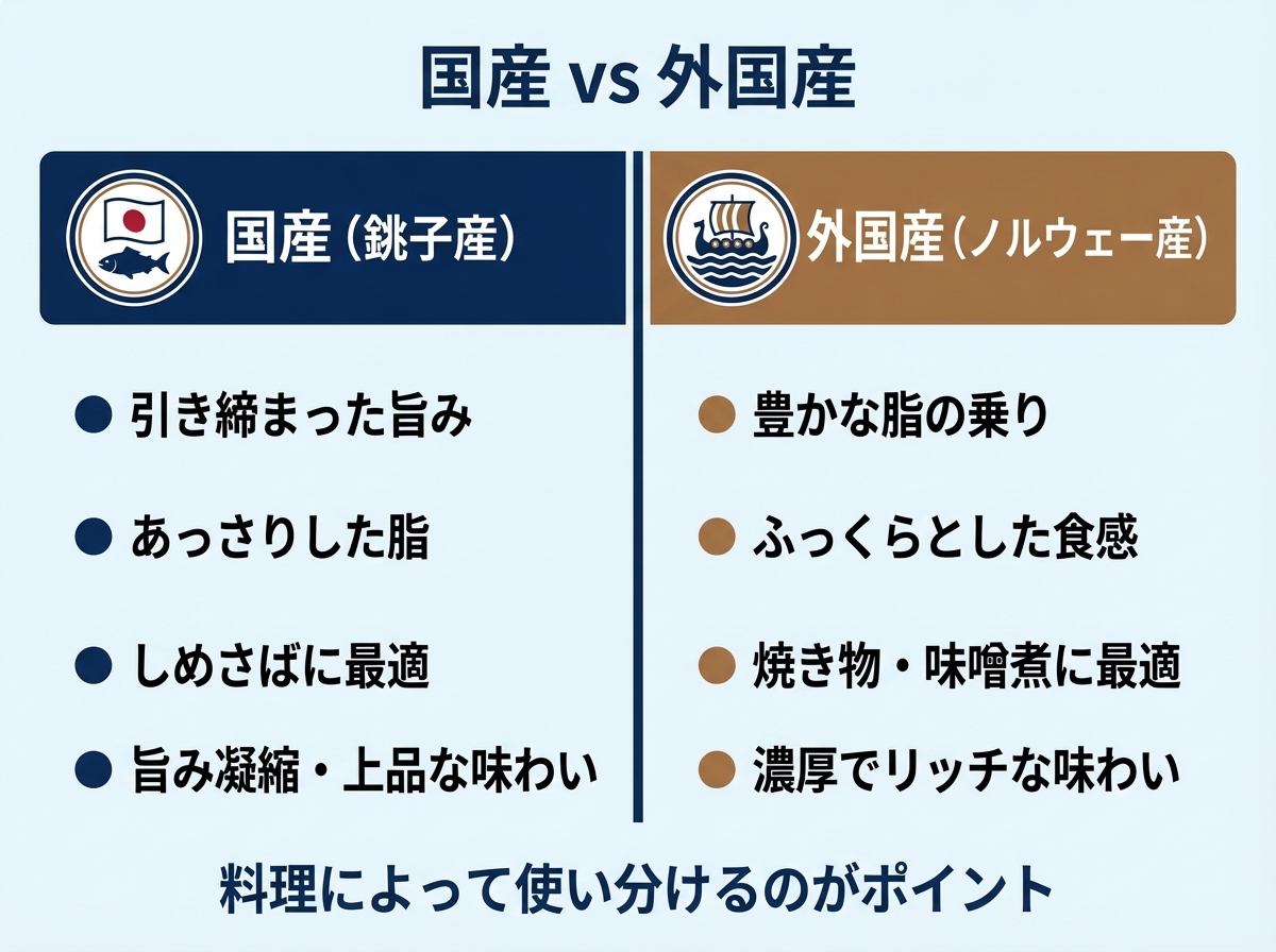 しめさばや刺身なら国産(特に旬の銚子産)を。